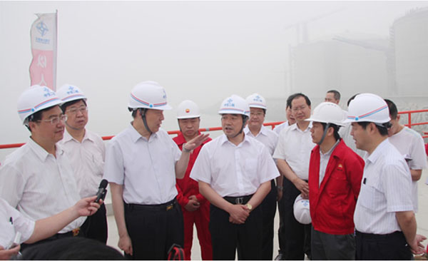 羅志軍一行來到中石油LNG項目現場,看到火熱的施工場面,羅志軍連聲稱贊:“洋口港變化太大了。” 他說,洋口港建設變化之大,令人矚目,去年6月來洋口港時,儲油罐還在建設之中,碼頭也剛剛起步,僅僅一年時間,兩個儲油罐已經封頂,第三個碼頭已經動工,令人耳目一新。他仔細詢問江蘇LNG項目部副總經理馬鐵輪:“目前碼頭最深能停多大的貨輪?”“中石油在洋口港準備建多少個儲罐?”“項目一期建成后,年中轉LNG能力有多大?”“中石油準備建五個儲油罐,已經建成兩個,第三個準備開工建設,一期建成后年中轉LNG650萬噸,二期建成后,年中轉能力達到1000萬噸。已經建成的LNG碼頭最深可以停泊13萬噸級貨輪,目前只需要一個碼頭,二期需要用兩個碼頭。”馬鐵輪一一回答。在LNG鋼棧橋前,羅志軍停下腳步,仔細詢問負責人鋼棧橋的結構、作用,以及承載能力等,得知這一棧橋是全世界LNG鋼棧橋長度第三、國內第一時,羅志軍連聲稱贊:“有考究,不簡單!” 加快江蘇沿海開發,是羅志軍此行調研的重點,他指出,沿海開發核心就是要支持蘇中、蘇北的經濟社會發展。他說,如東地處沿海開發的前沿,地理條件優越,緊鄰上海,與蘇中、蘇北相接,起到了承接上海,輻射蘇中、蘇北的作用,如東基礎設施、能源條件較好,發揮好這優勢,對于江蘇沿海開發的意義重大。他指出,沿海開發首先就要利用海,通過港口、碼頭來利用海。就江蘇沿海港口建設,羅志軍表示,江蘇沿海的幾個港口作用各不相同,洋口港與連云港、大豐港的功能沒有交叉,這就要求各地充分發揮各自港口的專業特色。中石油LNG項目落戶洋口港,如東就要打好能源基地這塊牌。他表示,省政府將與中石油高層洽談,將洋口港建成中石油LNG的中轉站、儲運站和輻射站,把它專業化和影響力再進一步擴大,使得資源得以充分利用。周鐵根介紹說,中石油準備在洋口港建設三個基地,一個是LNG基地,第二個是石油化學品的集散物流中心,第三個就是煉化一體化項目。羅志軍聽后連連稱好,他希望洋口港要把握住能源這一特色,充分發揮好港口的專業性。就下一步的工作,羅志軍強調,要借助港口建設這一機遇發展臨港重化工產業,重點做好新加坡金鷹集團和中石油的幾個大項目,只有將臨港重化工產業資源充分地利用起來,沿海的優勢才能得以體現。提到金牛島的開發,周鐵根建議與省政府相關部門合作開發時,羅志軍十分贊同,他說,省里成立了沿海辦,有沿海開發集團,它是受省政府的委托,可以用這個資產與當地政府進行聯系,然后合作開發相關項目,只要是符合發展方向的,省政府將全力支持。他還指示相關人員,做好對接工作。臨行前,羅志軍囑咐市、縣領導說:“過去多年艱苦奮斗,現在已經見到成效,希望你們要加快步伐、抓住機遇、加快發展。” 省政府秘書長樊金龍、省發改委主任毛偉明、省經信委主任陳震寧、省財政廳廳長潘永和、省交通運輸廳廳長游慶仲、省政府辦副主任陳建剛、省沿海辦副主任梁學忠,市委常委、市委秘書長黃巍東,縣領導潘建華、周建飛、洪大林陪同視察。 |