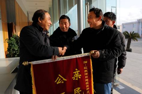 2012年1月16日,山東泰安楊岱山、楊興泉、楊岱華代表三十多位民工專程來到江蘇洋口港投資開發(fā)有限公司,為公司送來“親民愛民、公正廉明”的錦旗,衷心感謝洋口港公司為他們清欠長達(dá)兩年多的工資。 2010年10月,楊岱山、楊興泉、楊岱華等三十多位民工作為泰州某公司勞務(wù)用工人員在洋口港臨港工業(yè)區(qū)進(jìn)行吹填工程施工,盡管洋口港公司按照工程節(jié)點(diǎn)及時(shí)給泰州某公司工程款,但是由于泰州某公司因經(jīng)營管理不善等原因,所聘用的勞務(wù)用工人員工資一直拖欠不清。2011年12月,洋口港公司在年度工程檢查時(shí)發(fā)現(xiàn)了這一問題,引起縣政協(xié)副主席、洋口港公司總經(jīng)理余科的高度重視,他及時(shí)召集相關(guān)人員研究解決問題方案。春節(jié)前,洋口港公司相關(guān)部門協(xié)同努力,采取“特事特辦”的方針,將泰州某公司拖欠的75萬元農(nóng)民工工資發(fā)放到農(nóng)民工手中,終于使這一遺留長達(dá)兩年多的農(nóng)民工工資問題得到妥善解決。